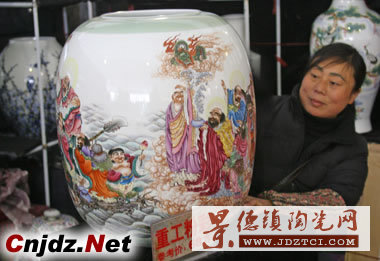昨日,在武汉国际会展中心广场和武昌徐东路销品茂广场同时展出的“景德镇工艺陶瓷展销会”上,同为“十八罗汉”重工粉彩冬瓜瓶,由于作者不同,武汉国际会展中心广场这边的标价68万元,而武昌销品茂广场叫价仅1万元。