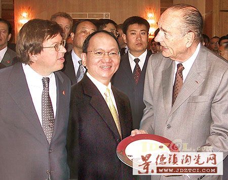 (左:柏图总裁Michel Bernardaud;中:法蓝瓷总裁陈立恒;右:法国总统Jacques Chirac)(资料图片)