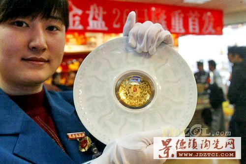 此次发行的100克规格的奥运金盘是采用纯度为999的黄金铸造,全球限量发行8000套。该奥运金盘巧妙地嵌在一个精致的瓷盘中央,此瓷盘由中国瓷都景德镇陶瓷协会选用中国四大名瓷之首的玲珑瓷工艺特别定做。玲珑瓷因其“白如玉”、“明如镜”、“薄如纸”、“声如磐”的工艺特点而蜚声海内外,目前已准备申请世界非物质文化遗产。整套产品由于制作工艺繁琐、复杂,成品率极低与工艺难度极高等因素造就了它特有的工艺美术价值,从而引发收藏爱好者争相订购的奥运收藏热潮。