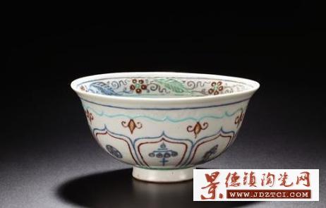 《卵白釉暗刻五彩戗金碗》 元 尺寸:直径17cm 成交价:74,750,000RMB