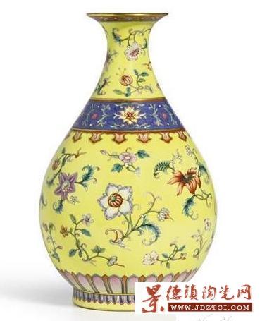 NO.7、清乾隆《黄地洋彩轧道锦地折枝洋花玉壶春瓶》45,276,840元